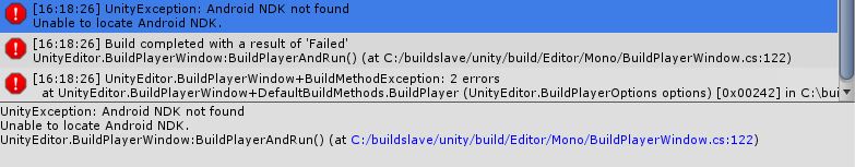 구글링을 통해 유니티 에디터의 NDK 파일 경로에 문제가 있다는 글을 보았습니다.
