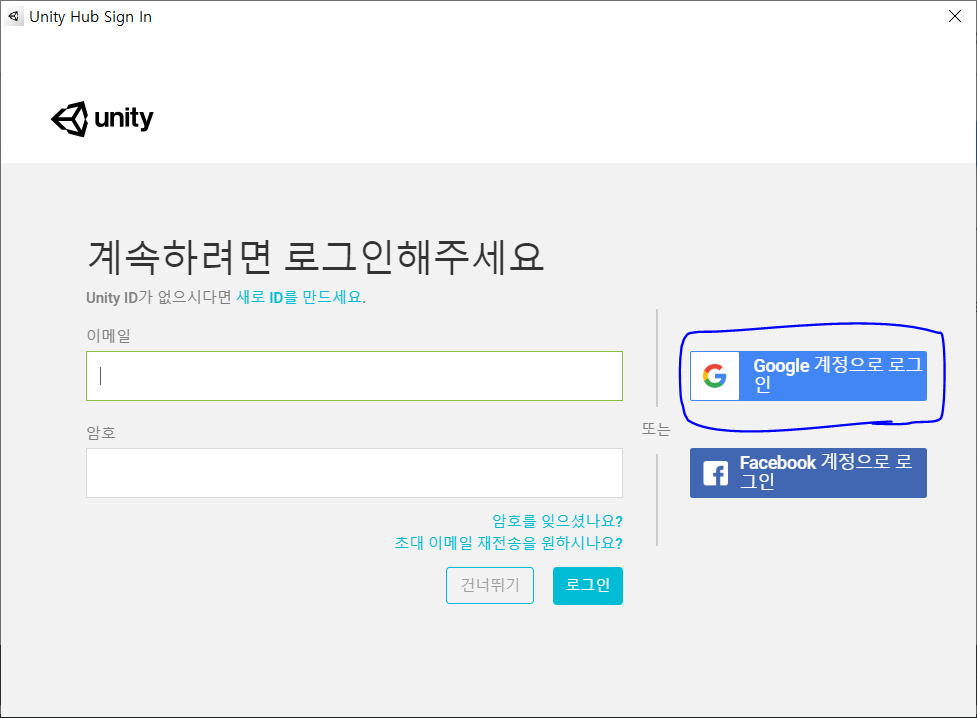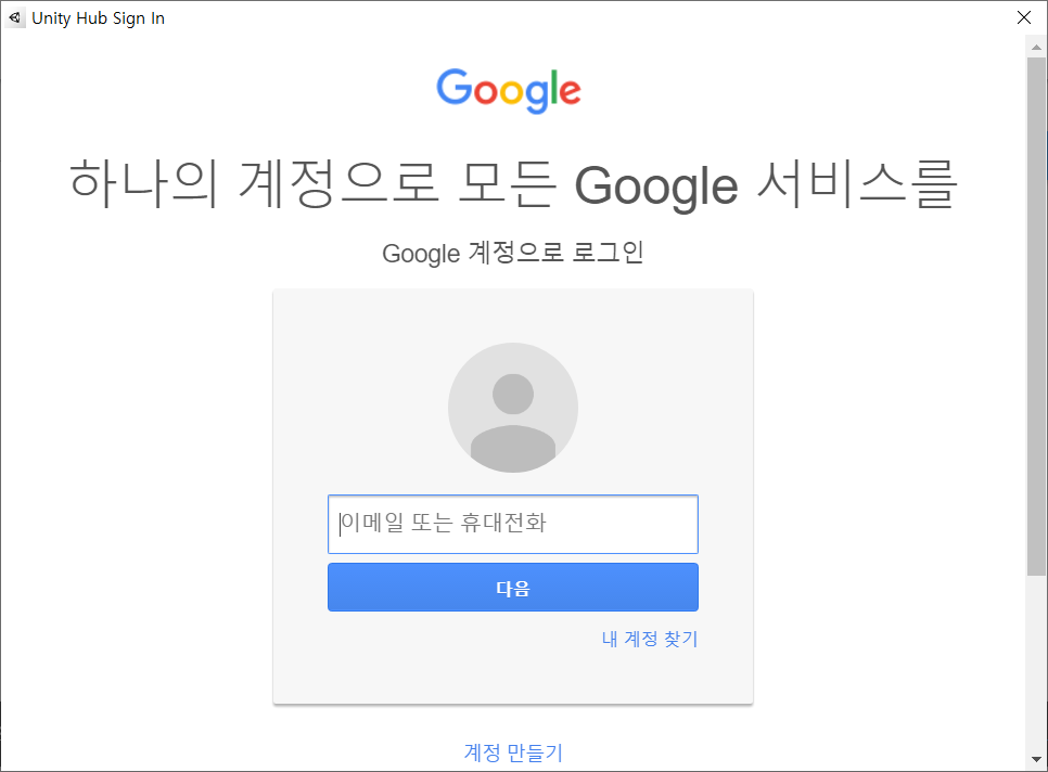 유니티 허브 및 에디터에서 Google 계정으로 로그인이 되지 않는 상황이 발생하여 공유합니다.