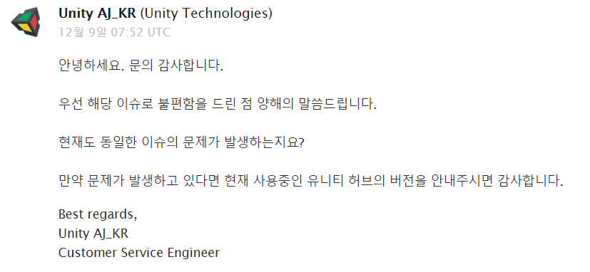 이에 저는 유니티에 메일문의를 하였습니다.(support@unity3d.com)